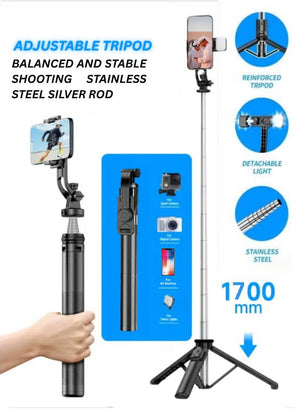 Capture every moment with this versatile 170cm phone tripod selfie stick. Combining a selfie stick and tripod stand in one, it’s perfect for selfies, live streaming, video recording, and travel. Equipped with a wireless remote, it offers hands-free operation for convenience and flexibility. The lightweight and portable design ensures easy carrying, while the adjustable height and sturdy build make it ideal for both indoor and outdoor use. Perfect for creating high-quality content effortlessly.