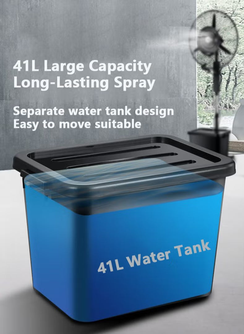 - Large Water Tank Capacity: Enjoy long-lasting cooling with our fan's generous 41L water tank. It provides continuous misting for extended periods. Ideal for gardens, workshops, warehouses, and factories, it keeps you cool even in large spaces.
