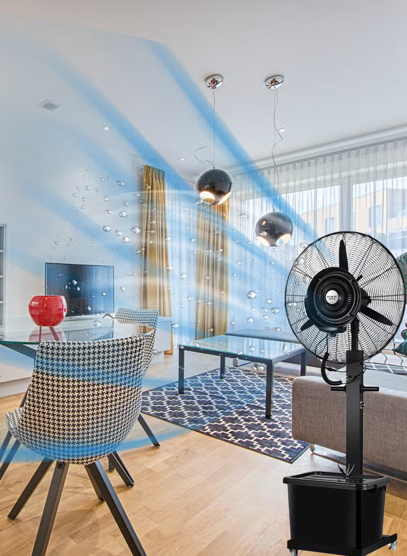 - Outdoor indoor Misting Fan: It's a powerful, portable radial mist fan that offers numerous product benefits. You will not have a problem with transporting this portable fan with mist to your patio and garden, or pretty much anywhere you want.