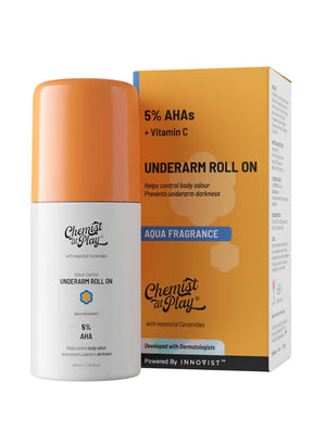 Chemist at Play UnderArm Roll On with Lactic and Mandelic Acid, Removes odour, Whitens and Brightens Skin, Kills Bacteria, Exfoliates Underarm, Long lasting Aqua Fragrance, For Women and Men, 40ml