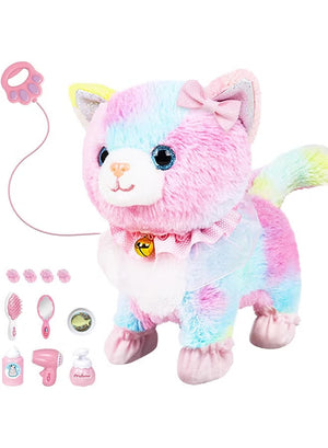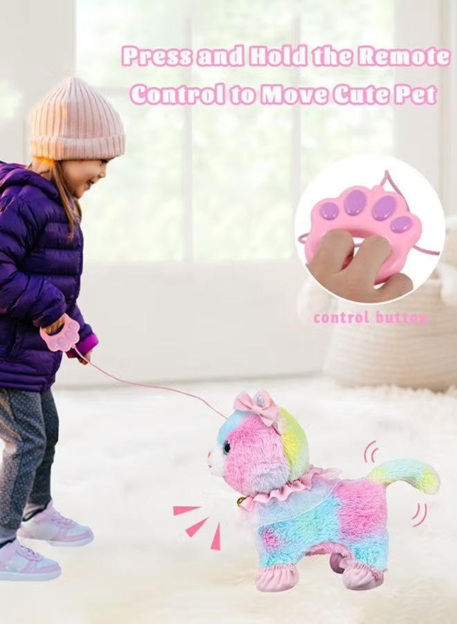 Interactive Electronic Plush Toy Walking and Barking Robot Cat Plush Cat Remote Control Kitten for Girls Colorful Cat Toy
