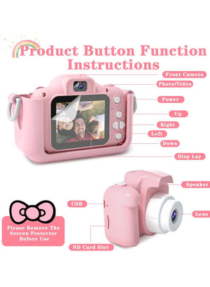 This HD digital kids' camera is designed to spark creativity while keeping little ones entertained for hours! With dual front & back cameras (1080P HD), a vibrant 2.0" IPS screen, and 20+ adorable cartoon photo frames, your child can capture memories like a pro—no internet or complicated settings needed!