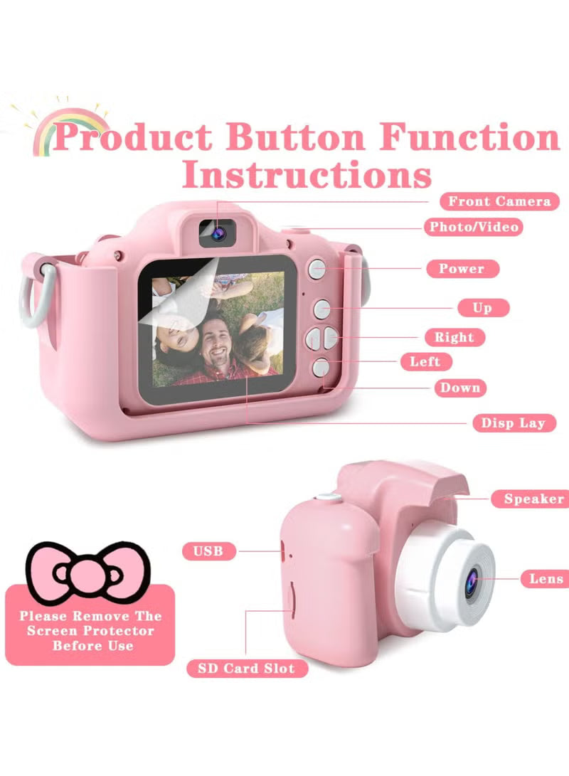 Kids Camera Upgrade HD Digital Camera for Toddlers Kid Camera Toys Front and Back Dual Cameras for Taking Photos and Recording Videos Multiple Cute Cartoon Photo Frames with 2.0in IPS Screen Gift Pink