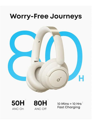 Q30 Hybrid Active Noise Cancelling Headphones with Multiple Modes, Hi-Res Sound, 50H Playtime, Fast Charge, Soft Earcups, Bluetooth Headphones, Travel White