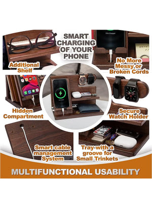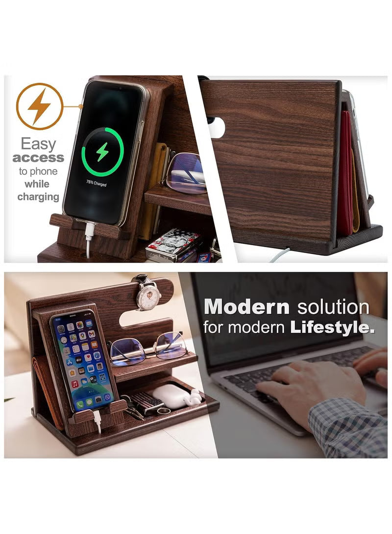 Wood Phone Docking Station Ash Key Holder Wallet Stand Watch Organizer,Nightstand Organizer Idea Gadgets for Men Husband Wife Dad Son Boyfriend Birthday Gifts