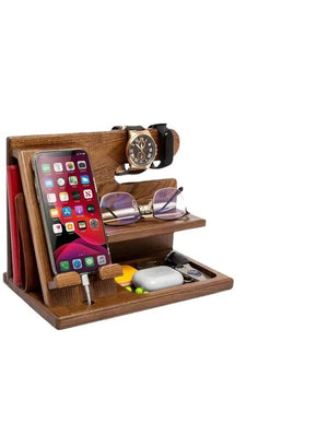 - [Convenient Design] The bracket is easy to assemble. Advanced design, multiple compartments, compact. Compatible with various smartphones. The booth also has compartments for storing wallets, glasses, watches, bracelets, keys, stationery, etc. This stand will become a noticeable and very practical accessory on your desk or bedside table.